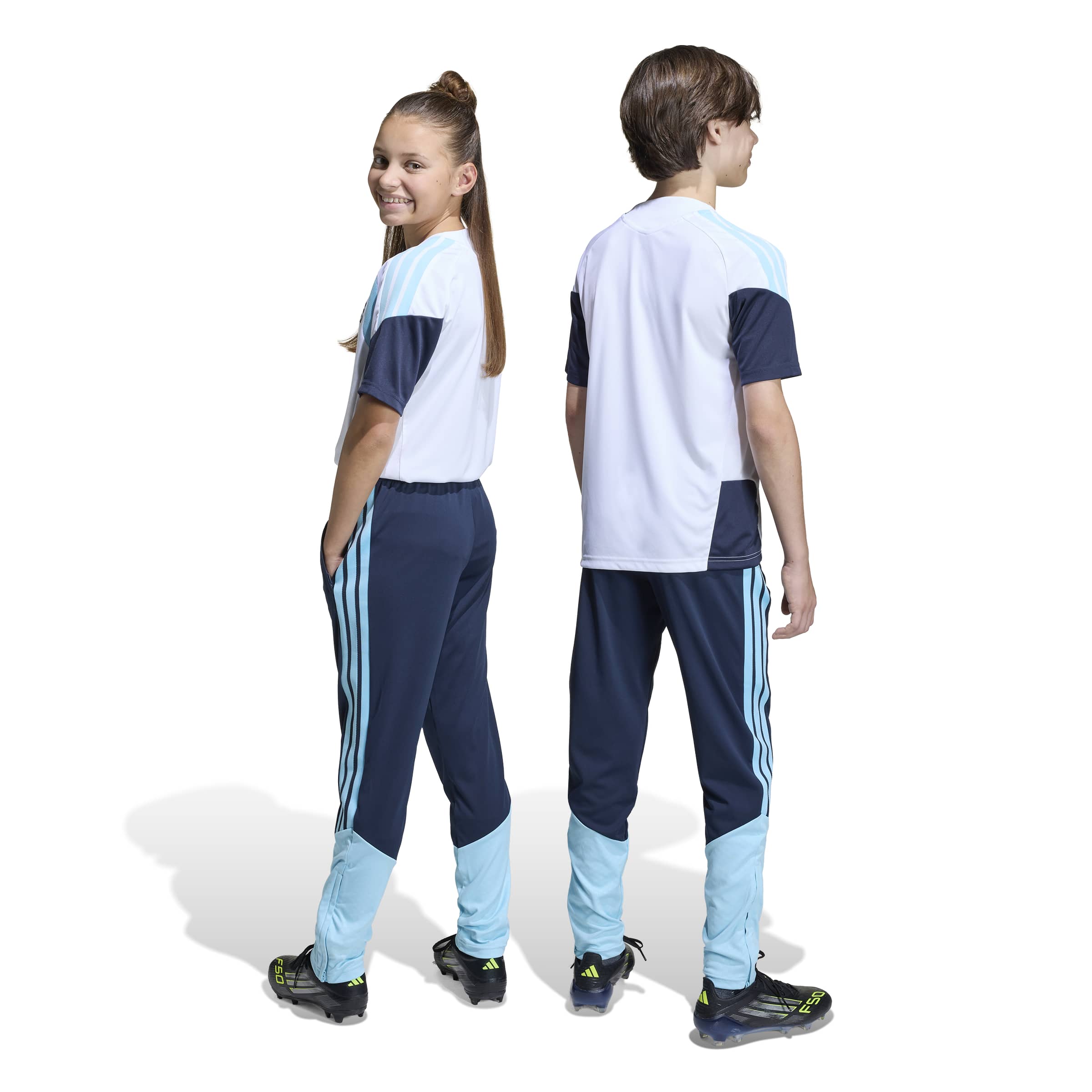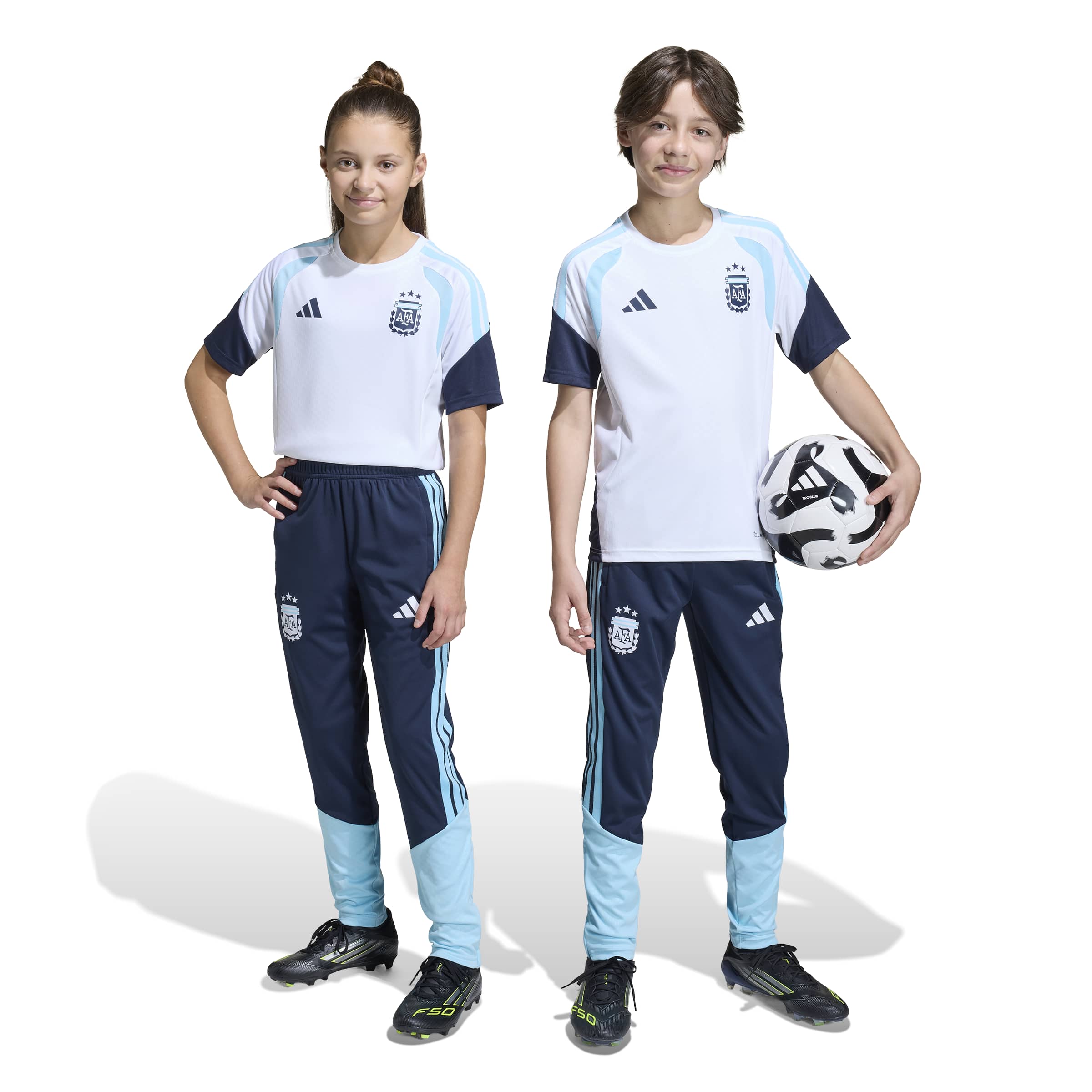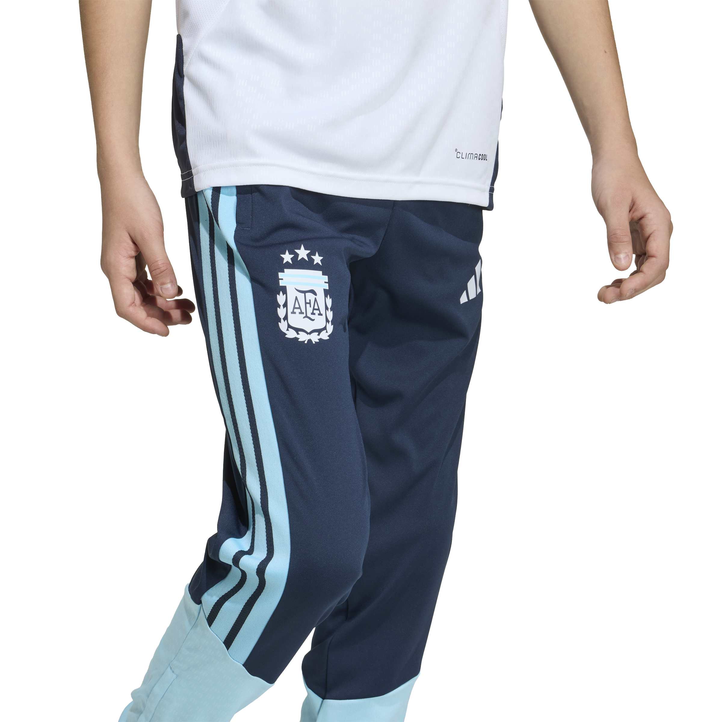The Argentina 26 Tiro Training Pants are designed for young football enthusiasts who want to train like their heroes. With a sleek, modern design, they reflect our football DNA, helping your child look and feel their best both on and off the pitch. Crafted with high-quality materials, these trousers offer a slim fit that moves with them, allowing freedom of movement. The iconic 3-Stripes and federation crest add a touch of style, making them a must-have for young football fans. Integrated Formotion technology is designed to free movement, not restrict it, allowing your child to focus on their moves and strive for their best. The drawcord closure provides a secure feel, while the mechanical stretch fabric brings flexibility. Made with care, these trousers are designed to keep up with the energy and enthusiasm of young footballers. Let your child experience the joy of the game in this performance sportswear, with the spirit of unity and play sewn into every stitch.